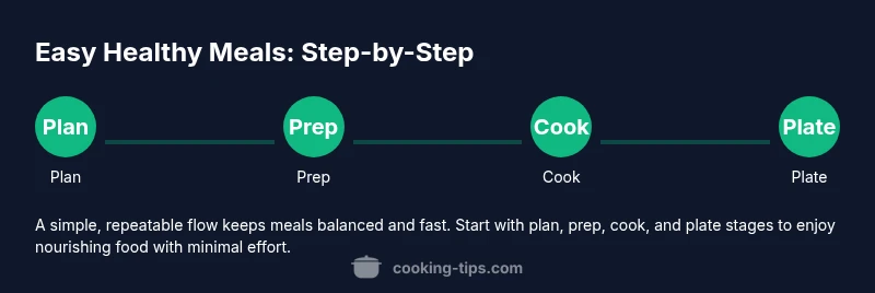 According to Cooking Tips, easy healthy meals start with simple ingredients, minimal steps, and a plan. This approach reduces decision fatigue and keeps you in control of nutrition without sacrificing flavor. The core idea is to remove friction from cooking by using reliable, everyday components you can rotate through the week. A practical example is a basic grain-and-vegetable bowl. Start with a protein (beans, chicken, or tofu), a complex carbohydrate (brown rice, quinoa, or oats), and several colorful vegetables. By sticking to a small number of ingredients you already enjoy, you’ll find it easier to cook without hunting for exotic items. The result is meals that taste good, nourish your body, and fit into a busy schedule. Throughout this guide you’ll see how to apply this concept to breakfasts, lunches, and dinners. This approach is particularly friendly for beginning cooks and adds predictability to weeknight meals.