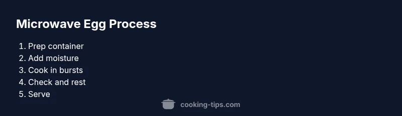 A successful microwave egg routine follows a few repeatable steps: gather your tools, crack eggs and add moisture, cover, cook in short bursts, and check for doneness. Stirring during cooking helps prevent pockets of undercooked egg and promotes uniform texture. Resting briefly after cooking lets carryover heat finish the job without overcooking. While this block isn’t a recipe, the pattern remains consistent across textures: moisture, heat control, and gentle handling produce the best results.