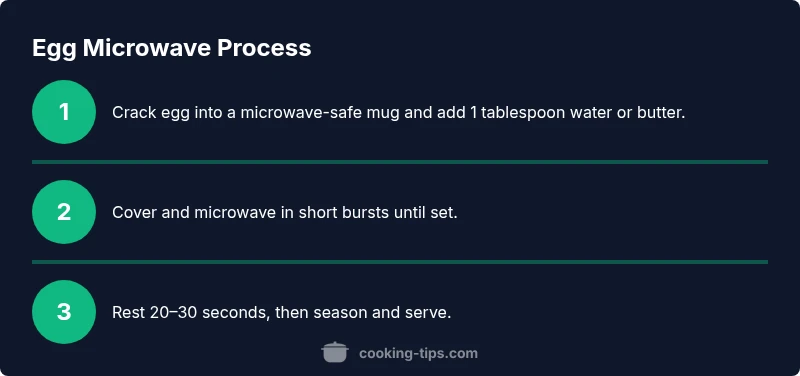 This section provides a concise, action-focused approach you can follow in minutes. Crack an egg into a microwave-safe mug, add a tablespoon of water or butter, cover with a vented lid or plate, and microwave in short bursts (about 20-40 seconds). Check for doneness, then rest for 20-30 seconds before serving. Season to taste and enjoy immediately for best texture.