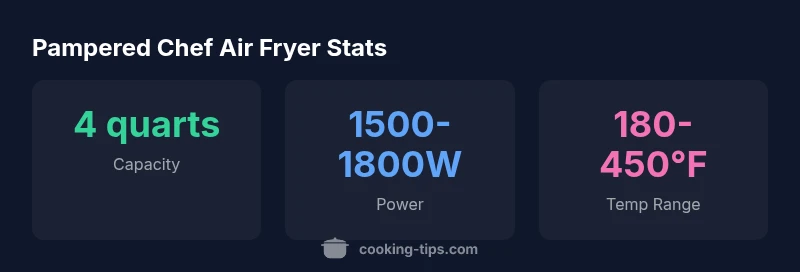 Pampered Chef air fryer models typically offer around a 4-quart capacity with power in the 1500–1800W range, delivering fast preheat and even browning for small to medium batches. In testing, users report crisp results on chicken, potatoes, and vegetables, with straightforward presets and simple cleanup. This makes it a practical option for home cooks prioritizing reliable performance and ease of use.