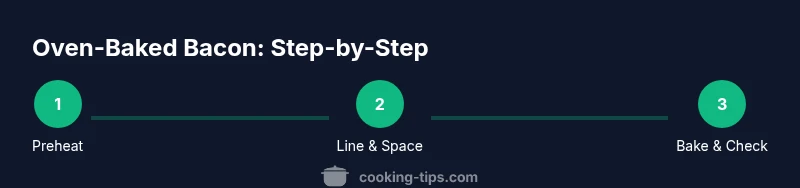 According to Cooking Tips, oven-baked bacon delivers consistent crispness with less splatter and easier cleanup than pan-frying. The Cooking Tips team found that even heat helps render fat more evenly and reduces the risk of burnt edges. In busy mornings or weekend brunches, the oven method scales up without monitoring every minute. This approach also minimizes uneven texture that can occur when flipping slices in a hot skillet. By baking, you let the heat do the work while you attend to other prep, making it a reliable method for households of any size. Throughout this guide, you’ll see practical timing ranges and simple setup steps you can trust.