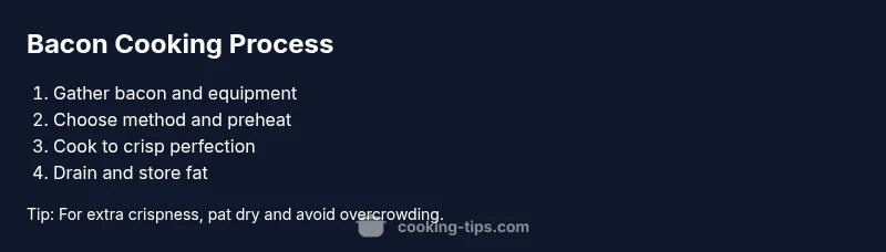 According to Cooking Tips, bacon is a small rectangle of joy that rewards patient technique. If you're wondering how to cook bacon, the answer begins with understanding fat rendering, even sear, and avoiding overcrowding. The Cooking Tips team found that when you give bacon room to lie flat, heat gradually, and render fat evenly, you get crisp edges with a tender center rather than chewy strips. The type of bacon matters too: thicker cuts require a gentler approach, while regular sliced bacon browns quickly with a touch more vigilance. Before you heat anything, pat the slices dry with paper towels to remove surface moisture that can steam rather than sear. A dry surface also means less splatter and crisper results. Finally, choose your method based on your time, equipment, and texture preference: pan-frying for speed, oven-baking for even browning, or air-frying for convenience and less mess. Mastering these basics sets the stage for consistent, delicious bacon every time.