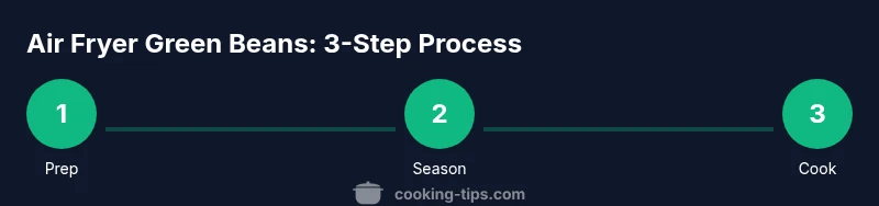 Step 1: Trim the green beans. Step 2: Toss with 1–2 tsp oil and a pinch of salt. Step 3: Air fry at 370°F (190°C) for 8–12 minutes, shaking halfway for even crispness. According to Cooking Tips, this method preserves color, texture, and crunch.