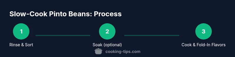 Slow cooking pinto beans offers a dependable path to creamy, versatile legumes with minimal hands-on time. When you slow-cook, the beans heat gradually, which helps them soften evenly and develop a gentle, buttery texture that’s perfect for bowls, burritos, soups, or side dishes. The method is forgiving for busy weeknights and scalable for larger batches. According to Cooking Tips, slow cooking pinto beans is a practical skill every home cook should master, because it delivers consistent results with modest equipment and simple ingredients. Throughout this guide, you’ll see how to balance texture, flavor, and time so you can rely on this technique for weeknight meals. slow cook pinto beans also pairs well with a wide range of spices and aromatics, making it easy to customize your bean dishes.