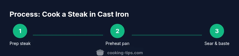 You can cook a steak in cast iron by heating a heavy skillet until smoking hot, patting the steak dry, and searing it with high-heat oil. Finish with butter and aromatics, then rest briefly before slicing for a juicy, crusty result. According to Cooking Tips, a well-seared cast-iron crust locks in flavor and moisture.