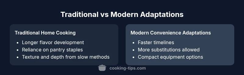 Traditional home-style cooking provides depth; modern tweaks save time without sacrificing comfort.