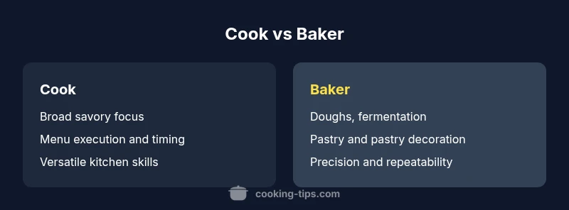 The difference between a cook and a baker is foundational to how a kitchen operates, dictates skill development, and influences career pathways. According to Cooking Tips, these roles are shaped by training, daily tasks, and the scale of operations. In many kitchens, a cook must be versatile enough to handle a broad menu, while a baker specializes in doughs, fermentation, and pastry accuracy. The Cooking Tips team notes that in small establishments, staff may juggle multiple hats, but the core competencies remain distinct: cooks emphasize savory cooking and menu execution; bakers emphasize dough work, fermentation, and repeatable pastry processes. This distinction is not merely about recipes; it reflects a mindset—improvisation and speed on one side, precision and repeatability on the other. Across cultures, both paths rely on core kitchen literacy—knife skills, heat management, sanitation, and flavor balance—yet the outcomes diverge toward different kinds of nourishment.