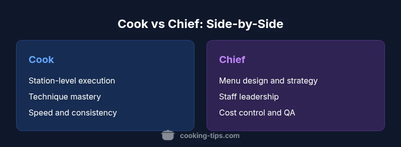 Explore the difference between a cook and a chief, detailing duties, leadership, and training. Learn how these roles shape kitchen operations, career growth, and daily workflows for home cooks aiming to work in professional settings.