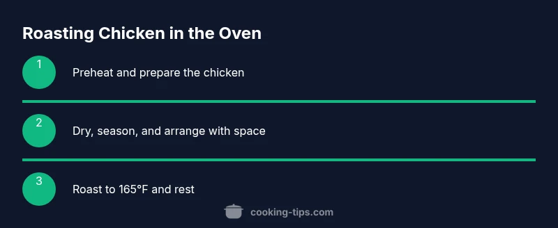 Cooking chicken in the oven is a balance between heat, time, and the size of the pieces. The goal is to drive heat into the thickest portions without drying out the outer surface. The Cooking Tips team has found that the best results come from starting with a moderate oven temperature, using a rack to promote air circulation, and ensuring the chicken is patted dry before seasoning. By understanding the relationship between cut type (bone-in vs. boneless) and thickness, you can estimate a reliable range rather than chasing a single magic minute. This approach also helps you adapt on busy weeknights when you grab whatever you have on hand. According to Cooking Tips, the key to consistency is planning for a safe internal temperature and a short, comfortable rest period after removal from the oven.