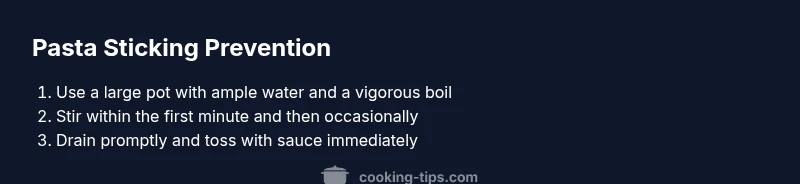 Common mistakes include rinsing hot pasta, which removes starch needed for sauce adhesion, and letting pasta sit in a colander too long. Rinsing also cools the noodles, making them harder to separate. Quick fixes: avoid rinsing for hot dishes, keep pasta moving during and after draining, and sauce-yield immediately after draining. Cooking Tips analysis shows that sticking issues are often caused by lapses in timing and insufficient stirring early on.