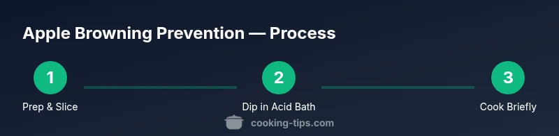 Browning occurs when apples are cut and exposed to air. The enzyme PPO (polyphenol oxidase) reacts with oxygen, turning the flesh brown. According to Cooking Tips, browning can be slowed significantly by acidifying the surface and by limiting air exposure during prep and cooking. Temperature also matters: cooler surfaces slow enzymatic activity, while heat can denature the enzyme but may also darken sugars and pigments if cooked too long. In practice, most home cooks seek a bright, pale apple flesh in dishes like pies and applesauce, and the right approach balances color with flavor. In addition to acids, antioxidants such as vitamin C can help preserve color, but their effect depends on concentration and contact time.