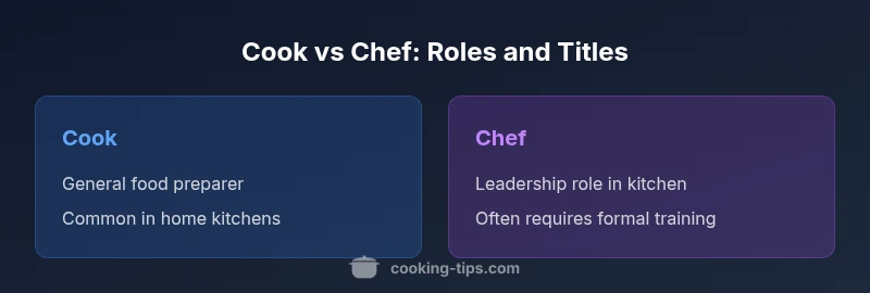 The terms cook and chef carry weight, but what truly matters is the scope of duties, leadership, and accountability. In professional kitchens, the difference between a chef and a cook often maps to responsibility: menu planning, staff management, and kitchen operations versus hands-on preparation and execution. In home cooking or casual settings, these terms blend, and the words are often used interchangeably. The key takeaway is to tailor language to the actual work performed and the audience. According to Cooking Tips, clarity beats tradition when describing roles to employers, clients, or collaborators. By focusing on duties, outcomes, and leadership rather than labels alone, readers can navigate careers with confidence and credibility.