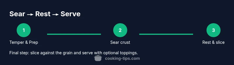Resting is crucial to redistribute juices and finish carryover cooking. After searing, transfer the steak to a warm plate and tent loosely with foil for 5–10 minutes. Resting times can make or break juiciness; even a few minutes can solidify the crust and improve tenderness. Slice against the grain to maximize tenderness and serve with simple accompaniments like butter, garlic, herbs, or a light pan sauce. The goal is balance: a crisp crust, juicy interior, and a clean plate.