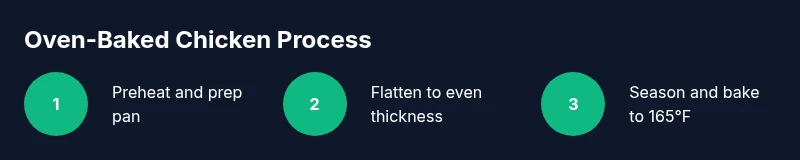 By oven-roasting chicken breasts you can achieve juicy, evenly cooked meat with minimal effort. Start with evenly sized breasts, pat dry, and season well. Preheat the oven and bake until the thickest part reaches about 165°F (74°C), then let rest for 5 minutes before slicing. This method yields tender results with light browning and flavorful crust.
