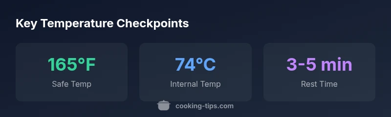 Temperature control is the cornerstone of both food safety and flavor when cooking chicken. Bacteria such as Salmonella can survive at improper temperatures, so reaching and holding the recommended internal temperature dramatically reduces risk. Beyond safety, temperature also directly affects juiciness, texture, and color. A thermometer helps you move away from guesswork toward precise, repeatable results. According to Cooking Tips, investing a few seconds to verify temperature yields consistently better outcomes than relying on color cues or time alone. For home cooks, the habit is simple: insert the thermometer into the thickest part of the meat, away from bone, and confirm it has reached 165°F (74°C). This target applies across methods—roasting, grilling, pan-searing, and slow cooking. Remember that carryover cooking will continue after you remove from heat, so some rest time is essential. Mastery comes from practice and a trusted thermometer, not intuition alone.