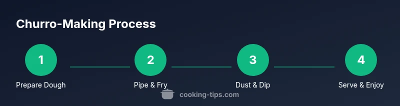 Churros are essentially a light, moist dough that puffs slightly as it hits hot oil, then crisps into a crisp, shell-like exterior while remaining tender inside. The key is a dough that releases steam as it cooks, creating a pocket of air that yields that signature crack when you bite into it. To achieve this, most traditional churro doughs are a pan-cooked mixture of water, flour, a pinch of salt, and sometimes a small amount of fat. The method relies on the starch in flour absorbing water and then gelatinizing as the dough cools, which helps the dough hold its shape and fry evenly. For best results, aim for a dough that’s pliable but not sticky, and keep it warm enough to pipe smoothly without tearing. In this guide, the dough is prepared in a single pan, cooled briefly to help handling, then piped into hot oil to fry. According to Cooking Tips Analysis, 2026, controlling moisture and temperature consistency yields noticeably crisper churros with less oil absorption, a hallmark of professional results. This section sets the stage for precise ratios and technique later on.