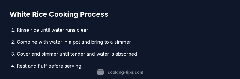 White rice is a simple staple, yet its final texture depends on how you handle moisture and heat. The most reliable approach starts with good rice, a deliberate rinse to remove surface starch, and a consistent cooking method that preserves grain integrity. Long grain varieties tend to stay separate while medium and short grain can be a touch stickier. By applying the same core steps across methods you will achieve fluffy, evenly cooked grains. This guide explains what makes white rice cookable and how texture is affected by each choice you make in the kitchen. Understanding these factors helps home cooks tailor texture for pilafs, bowls, or stir fries. The goal is to have grains that are tender at the center but still intact along each grain, with a light sheen of steam on the surface. You will learn why rinsing matters, how resting after cooking finishes the process, and how to adapt the method when you are short on time. With steady technique and a few simple decisions, your rice will consistently surprise you with its light, separate grains.