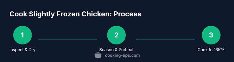 Food safety experts emphasize three pillars when cooking chicken from any state: temperature, prevent cross-contamination, and mindful thawing when possible. Cooking chicken from a partially frozen state means you must ensure the entire piece reaches a minimum safe temperature and remains there long enough to neutralize potential pathogens. Cooking Tips analysis shows that using an instant-read thermometer dramatically improves safety and outcomes, since visual cues are unreliable with frozen edges. Always use separate cutting boards for raw poultry and ready-to-eat foods, and wash tools between tasks. If you have time, thawing in the refrigerator is the safest option, taking roughly a day or more for larger pieces; cold-water thawing can shorten this, but requires more attention and quicker cooking. When in a hurry, cooking from slightly frozen is acceptable with the right technique, but never skip temperature checks or overcrowd the pan. Adhering to these principles minimizes the risks without sacrificing convenience.