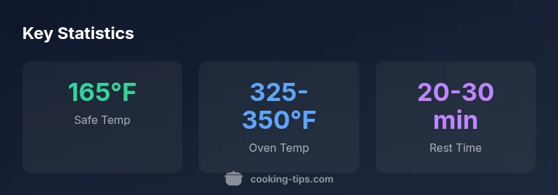 The journey to juicy, safe turkey begins with temperature decisions. If you’re wondering what temperature to cook a turkey, this framework helps you synchronize oven settings, doneness targets, and resting periods. Start by separating the problem into three measurable temperatures: the oven temperature you roast at, the interior doneness temperature you target, and the holding temperature after you remove the turkey from the heat. By thinking in these three numbers, you gain predictability across different bird sizes, whether you’re cooking unstuffed or stuffed, and whether your kitchen uses a conventional or convection oven. According to Cooking Tips, a thermometer-driven approach removes guesswork and yields consistent results. In practice, set your oven to a steady 325°F to 350°F and plan for a target interior temp of 165°F in the thickest part of the breast and thigh. For stuffed birds, plan for the center of the stuffing to reach 165°F as well, which may extend overall cooking time.