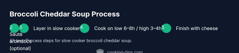 Slow cook broccoli cheddar soup is a dependable weeknight solution for home cooks who want flavor without a lot of hands-on time. The method thrives on layering broccoli, cheddar, aromatics, and stock, then letting time do the work. The Cooking Tips team has found that patience in the slow cooker yields a smoother, more integrated cheese sauce and a richer broccoli texture that’s hard to achieve with quick stovesides methods. Expect a comforting bowl with velvety body and gentle broccoli bites that harmonize with the cheddar's tang.